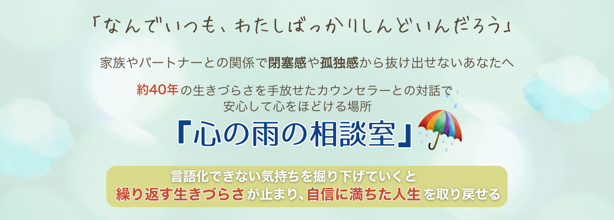 はじめまして、心理カウンセリング『心の雨の相談室』カウンセラーの雨音(あまね)きよです。