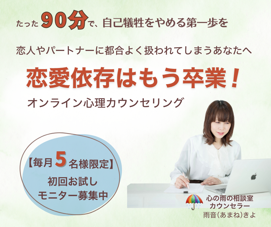 「執着恋愛・パートナー依存断ち切りカウンセリング」を受け自己犠牲から抜け出したお客様の声